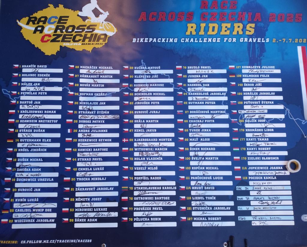Níže si můžete prohlédnout aktuální startovní listinu bikepackingové Výzvy Race Across Czechia 2025.