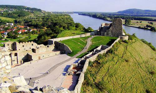 The route passes through Male Karpaty, Devín Castle, city of Bratislava, along the Danube, to the Panonhálma Monastery, to Lake Balaton, to Székeszfehérvár, Esztergom or Visegrád, and finishes in front of Hungarian Parliament Building in Budapest. Main route also includes a choice of using a ferry across Lake Balaton (from Tihany to Siofok, at cca 400.km).