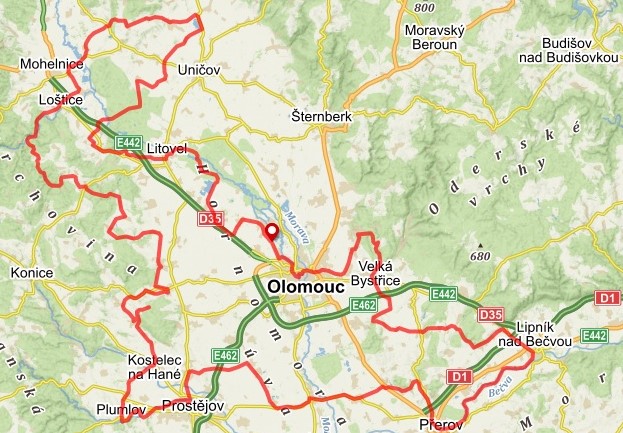 TRASA A ZAJÍMAVOSTI: Olomouc – hanácký skanzen Příkazy – pískovna Náklo – Litovel – Mladeč – arboretum Bílá Lhota -Uničov – zámek v Úsově – Mohelnice – Loštice – hrad Bouzov – Javoříčko – zámek v Náměšti na Hané – Černá věž v Drahanovicích – zámek Čechy pod Kosířem – zámek a přehrada Plumlov – cyklostezka podél Hloučely – Prostějov – cukrovar Vrbátky – kostel Očišťování Panny Marie v Dubu nad Moravou – Čekyně – Přerov – cyklostezka podél Bečvy – Lipník n. Bečvou – větrný mlýn v Lazníčkách – zámek Tršice – Velká Bystřice – Svatý Kopeček – Olomouc