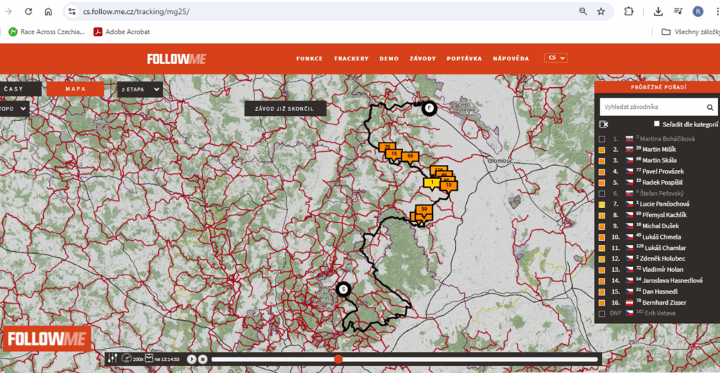 Průběh víkendových etap si můžete zpětně přehrát na stránce s GPS Trackingem: cs.follow.me.cz/tracking/mg25