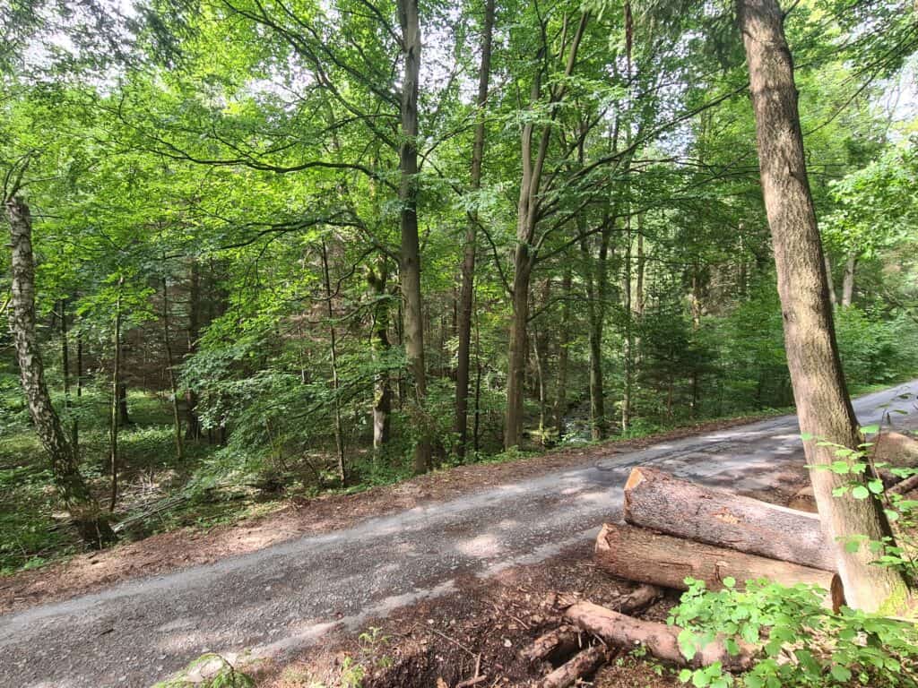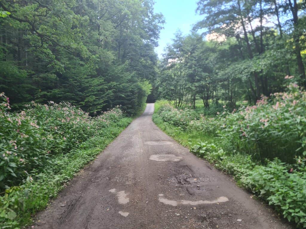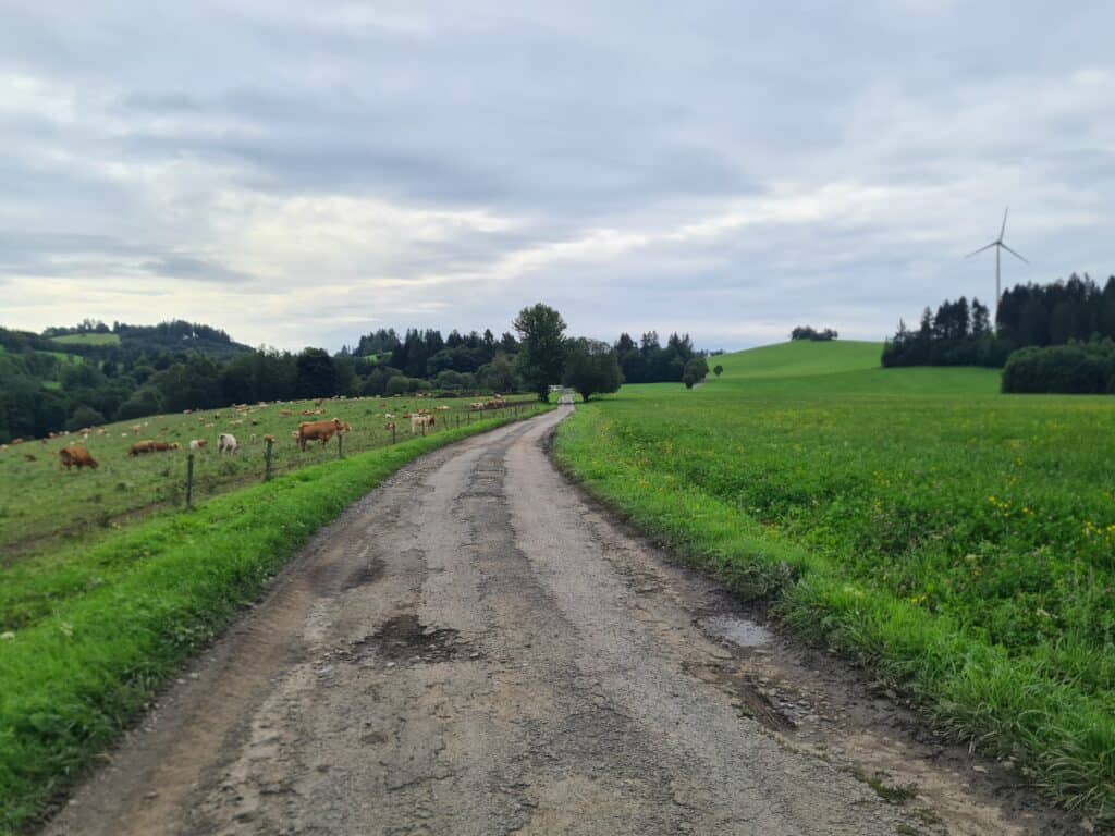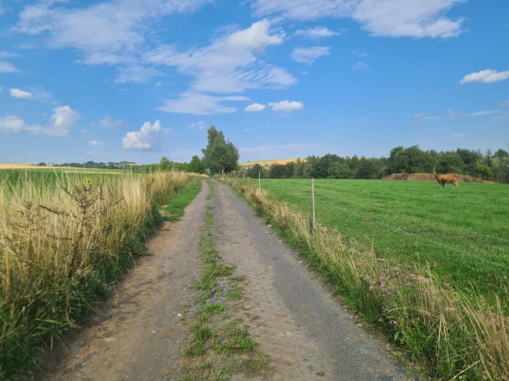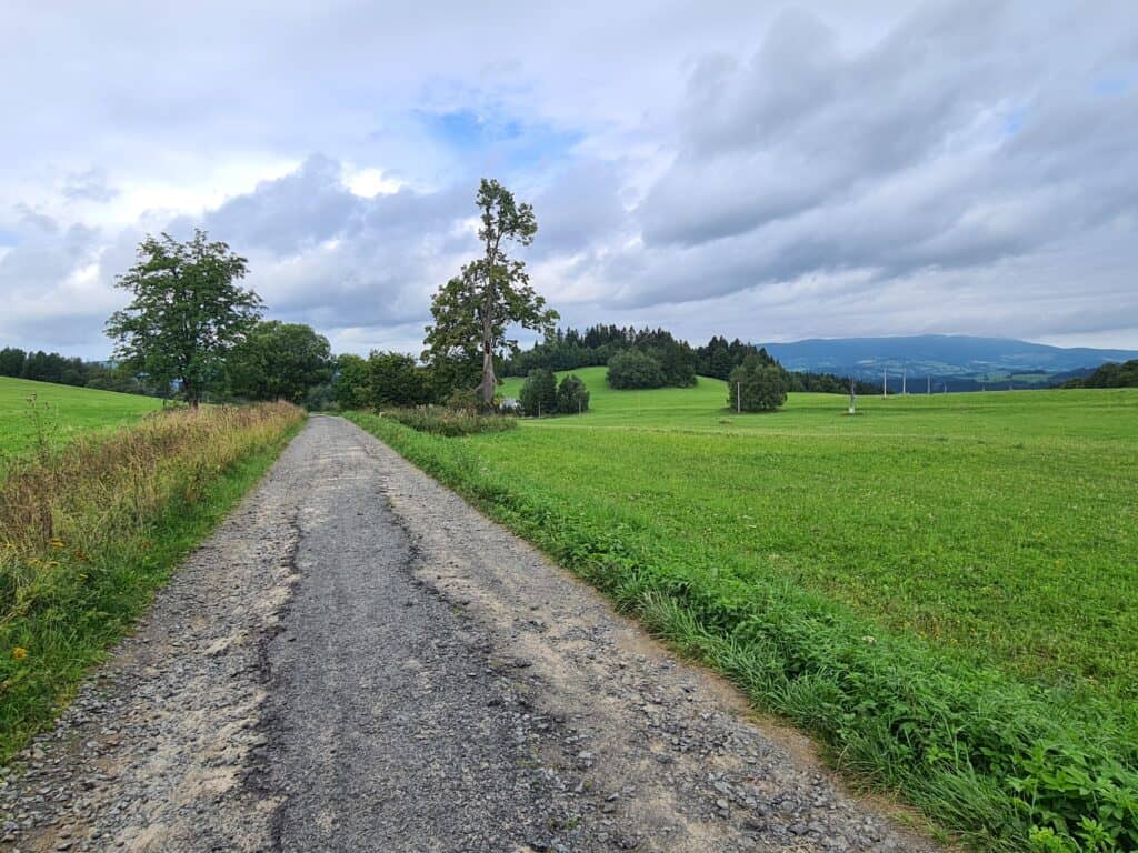 To už se dostáváte do PP Rabštejn. Tato oblast je protkaná mnoha kilometry uválcovaných štěrkových cest, které vás snadno dostanou do gravelové euforie. Do trasy MG23 jsme samozřejmě vybrali tu úplně nejlepší – na 3km po Farní pěšině se budete ještě dlouho s radostí vracet. Trochu kamenitější, ale stále gravel-friendly bude následný sjezd podél Dlouhého potoka do Bedřichova.