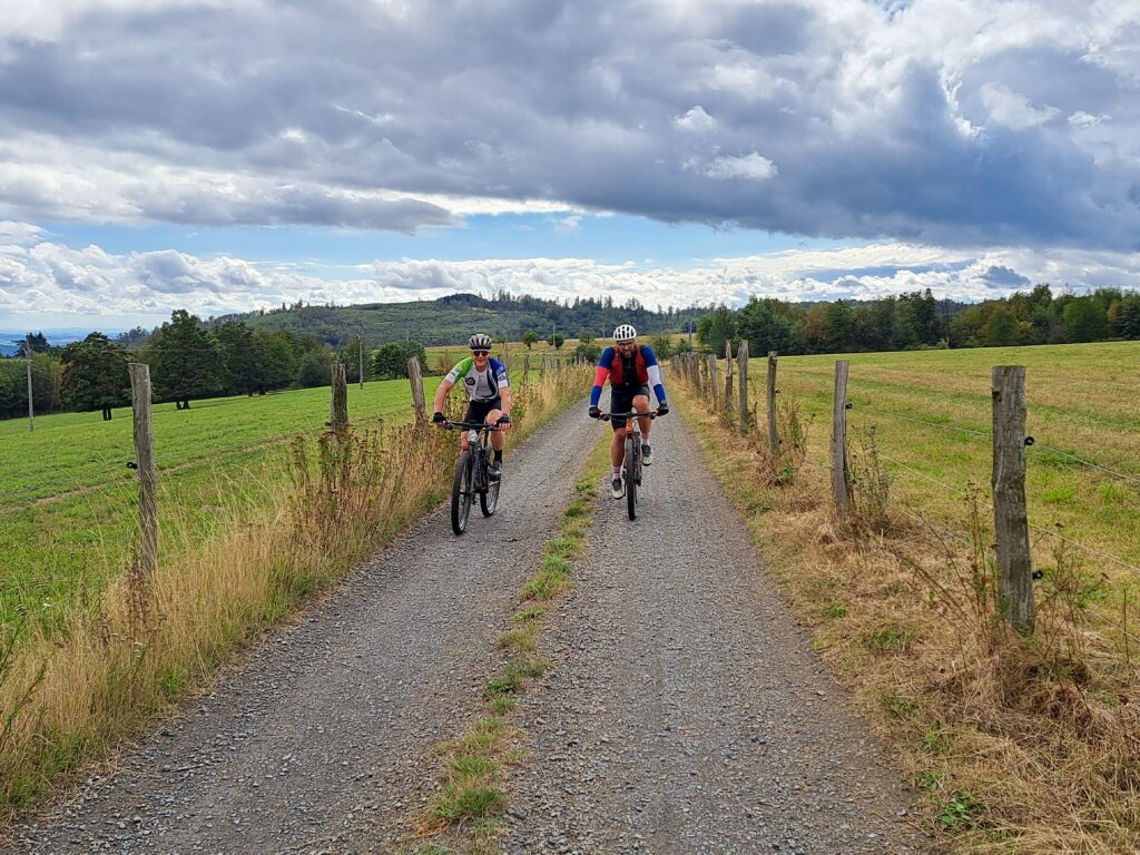Na zhruba 100.km jsme odchytili oba vedle sebe nad Středolesím, a jelikož prý byli „docela prošití“, vypadalo to na společný dojezd. V závěrečných kopcích měl ale přece jen více sil Libor a nakonec zvítězil o 6 minut v čase 6:19, Adamův čas byl tedy 6:25.