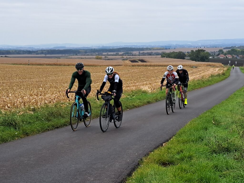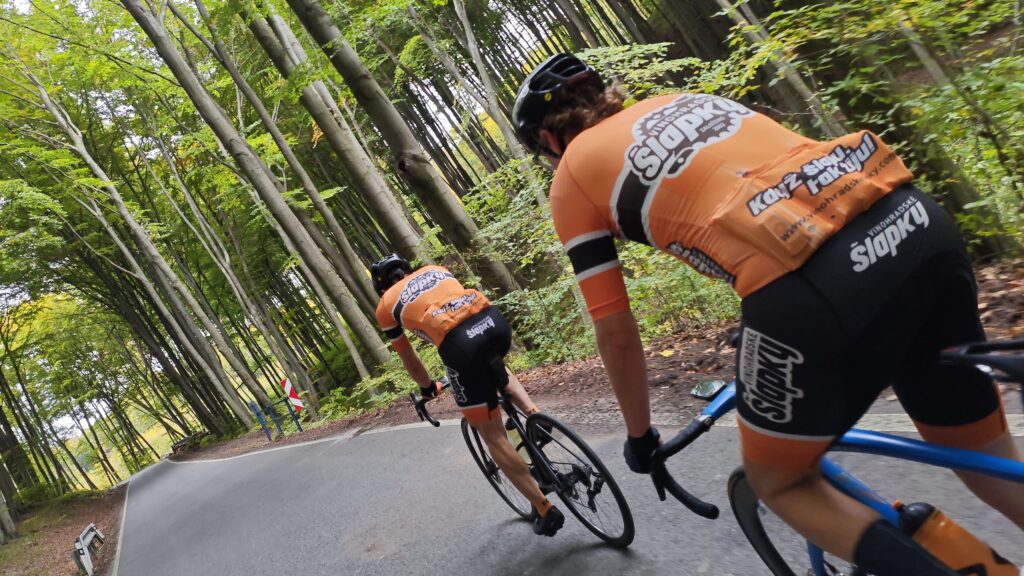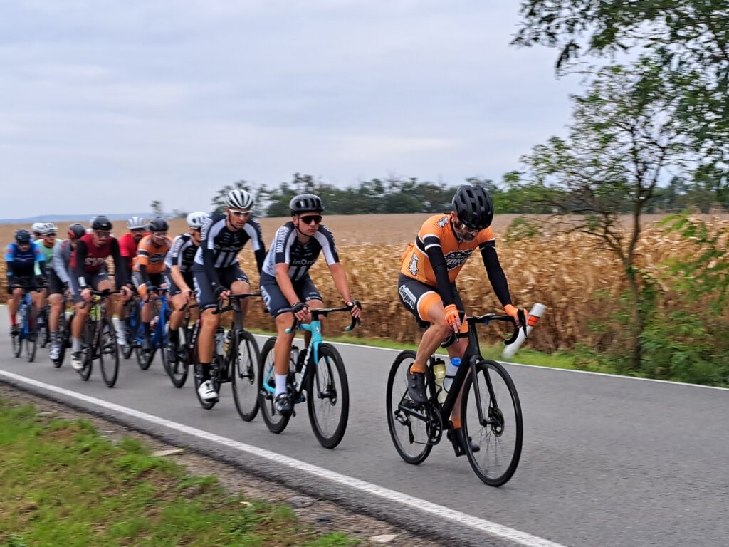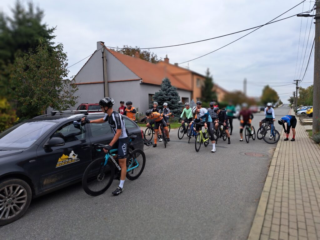 Očekávali jsme postupné roztrhávání pelotonu, ale jelo se stále na doraz, FotoPointy v Miloticích a Koryčanech se fotily za jízdy a nebyl prostor ani na doplnění pití, ani na vykonání malé potřeby.