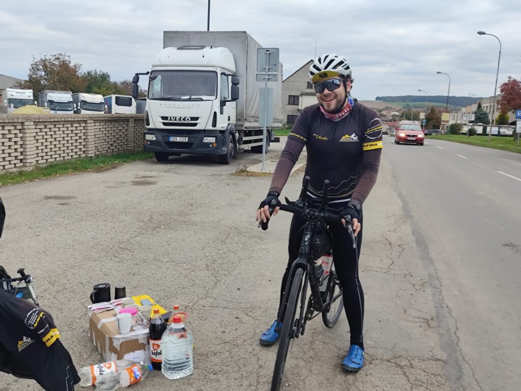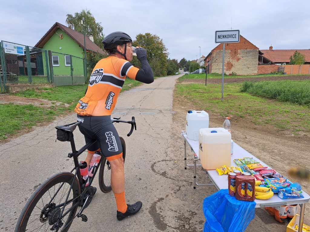 Tradiční Občerstvovačku jsme připravili v osadě Nenkovice na 65.km, kam Jirka přijel po 1h 54min a svou zastávku zkrátil na pár desítek vteřin.