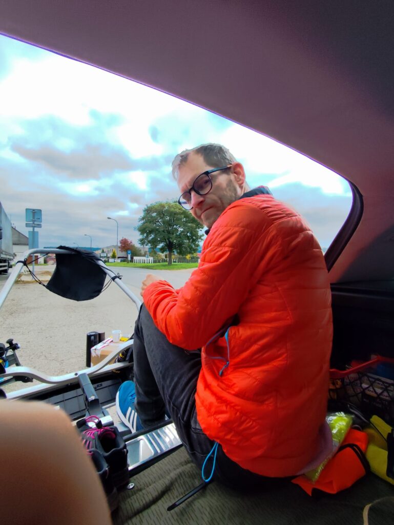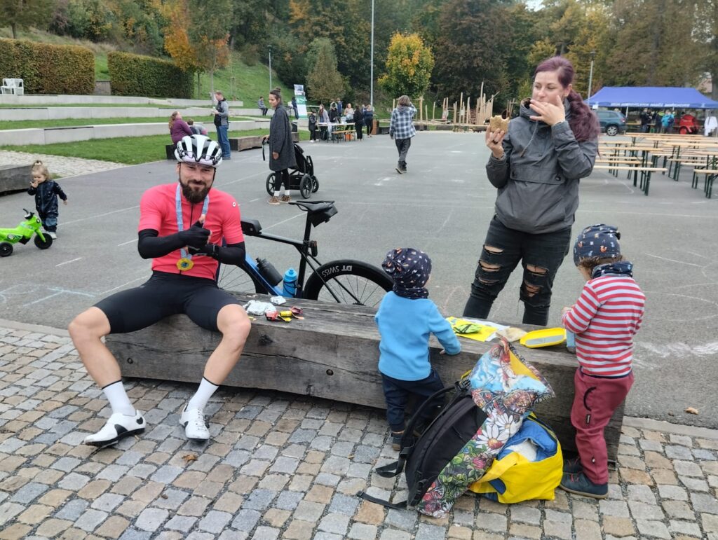 Se zajímavým příslušenstvím vyrazil na trať jeden z favoritů Miro Beleščák, který vzal na Švih časovkářské řídítka. A nutno dodat, že v potom v cíli své volby litoval 😀