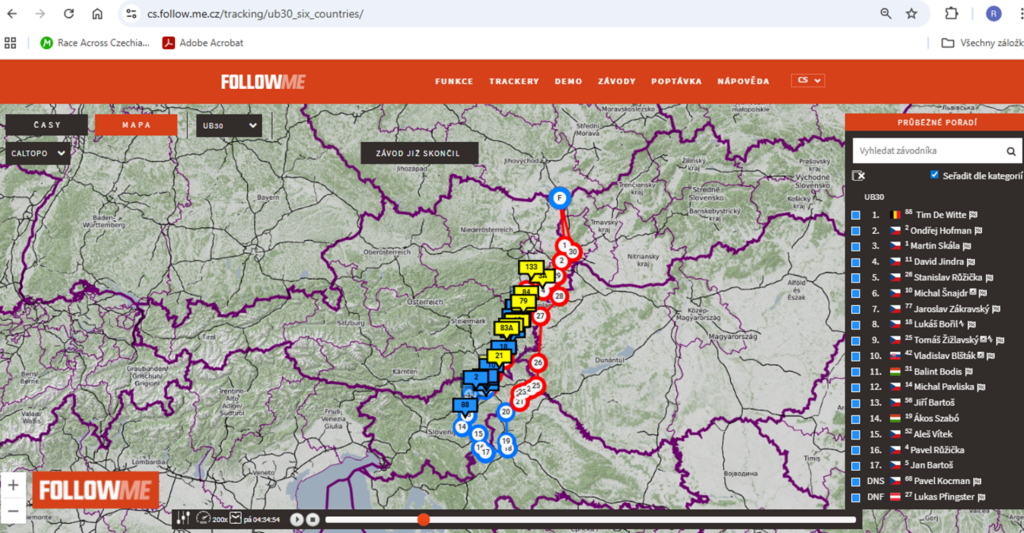 Průběh UB30 si můžete zpětně přehrát na stránce s GPS Trackingem od FollowMe:
