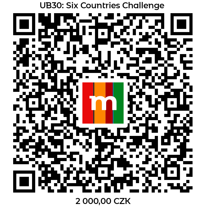 Startovné posílejte až od 1.1.2025 na bankovní účet : 670100-2216784675/6210, do poznámky pro příjemce uveďte své jméno a příjmení a text „UB30: SIX COUNTRIES“.