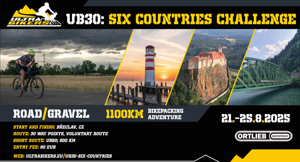 UB30: SIX COUNTRIES CHALLENGE je cca 1100km bikepackingová výzva bez zabezpečení, jejímž cílem je co nejrychleji navštívit organizátorem určených 30 průjezdních bodů, po libovolné trase, kterou si účastníci výzvy připravují sami nebo budou moci využít doporučenou trasu, která se bude svou délkou blížit optimální trase, ale jejím cílem bude zároveň vyhnout se frekventovaným silnicím.