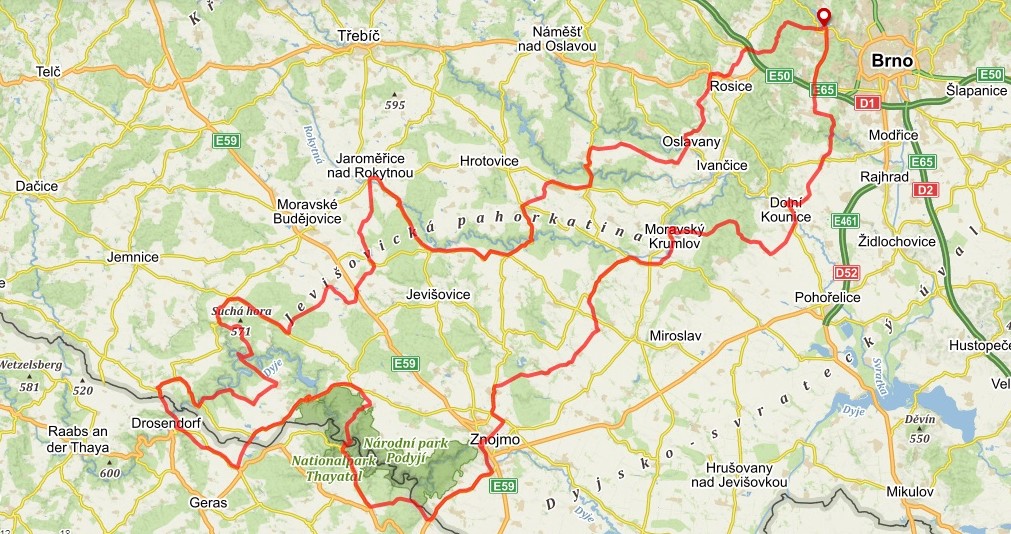 TRASA A HLAVNÍ ZAJÍMAVOSTI: Brno – Oslavany – JE Dukovany – Tavíkovice – zámek Jaroměřice n. Rokytnou – hrad Bítov – Uherčice – Drosendorf – zámek a přehrada Vranov n. Dyjí – Čížov – Hardegg – Znojmo – Únanov – Moravský Krumlov – klášter Rosa Coeli – Ořechov