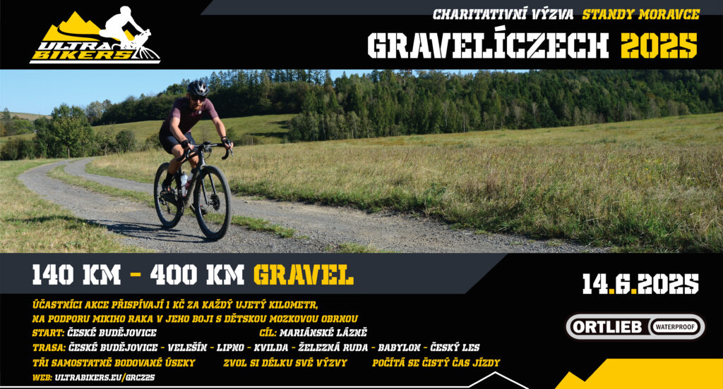 GRAVELÍCZECH 2025 je třetím ročníkem charitativní Výzvy s hromadným startem bloku „Každý kilometr pomáhá“, jejímž cílem je našlapat co nejvíce kilometrů po pevně dané trase pro gravely, a přitom přispět 1 Kč za každý ujetý km na podporu Mikiho Raka v boji s dětskou mozkovou obrnou.