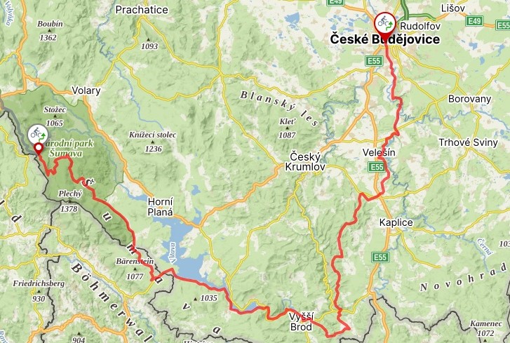 TRASA: ČB – Plav – v.n. Římov – Velešín – Rožmitál na Šumavě – Horní Dvořiště – Vyšší Brod – v.n. Lipno – Schwarzenberský kanál – Zvonková – Nové údolí