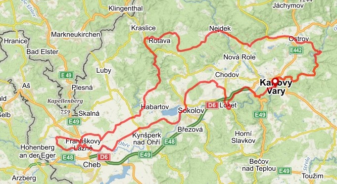 TRASA A ZAJÍMAVOSTI: Karlovy Vary – obora Linhart – hrad Loket – lom Jiří – jezero Medard – Sokolov – rybník Amerika – hrad Seeberg – Františkovy Lázně – Oloví – Rotava – Najdek – Hroznětín – Ostrov – Kyselka