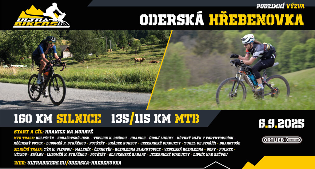 POZOR !!! ZMĚNA TERMÍNU – Oderská Hřebenovka je nakonec přesunuta z původní neděle na sobotu 6.9.2025, plus jsme navíc malinko prodloužili délku hlavní MTB trasy (135km) a přidali krátkou (115km).
