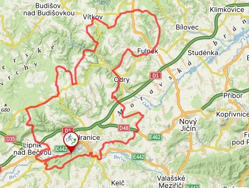 TRASA A ZAJÍMAVOSTI: Rybáře – Týn n. Vltavou – Maleník – Teplice n. Bečvou – Hranice – Černotín – Špičky – Heřmanice – rozhledna Blahutovice – Hynčice – Veselská rozhledna – Odry – Fulnek – Březová – Větřkovice – Vítkov – Klokočov – Spálov – Luboměř n. Strážnou – Potštát – Slavkovské radary – Jezernický viadukt – Lipník nad Bečvou