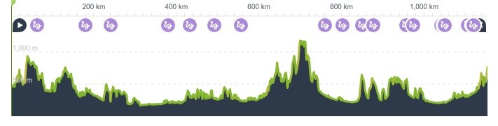 Celkové převýšení podle Komootu činí cca 13-14 000m.