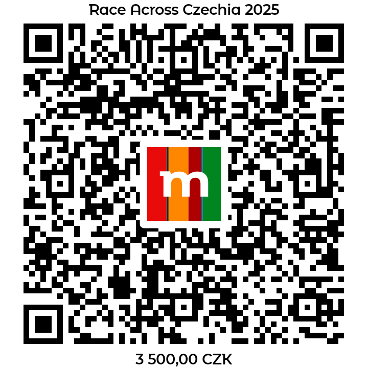 Startovné posílejte až od 1.1.2025, na bankovní účet : 670100-2216784675/6210, do poznámky pro příjemce uveďte své jméno a příjmení a text „RACZ25“.