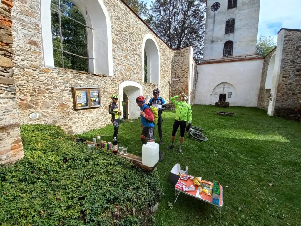 Na závěr se ještě musíme pochválit za geniální občerstvovačku uvnitř zříceniny kostela sv. Jana Křtitele ve Vysoké, kde jsme pro naše UltraBikery připravili možnost doplnit vodu a energii v úchvatné atmosféře, včetně zvonkohry odbíjející pravé poledne.