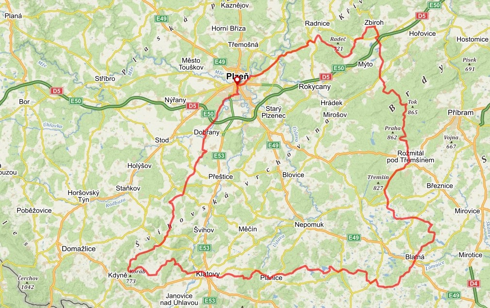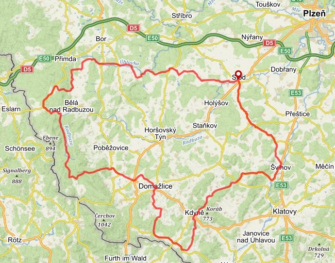 ŠVIHOVSKÉ SILNICE je 253 km / 3000 m dlouhá trasa pro silniční kola, která