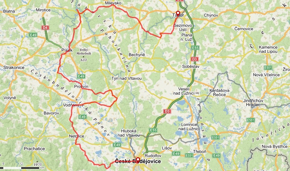 TRASA A HLAVNÍ ZAJÍMAVOSTI: Tábor – Milevsko – Zvíkov – Písek – Protivín – JE Temelín – Vodňany – Netolice – Holašovice – České Budějovice