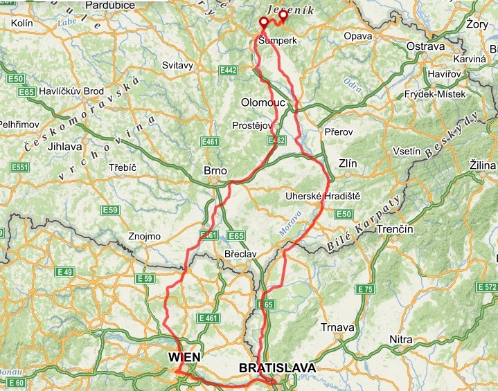 Skřítek – Šumperk – Prostějov – Brno – Vídeň – Bratislava – Kroměříž